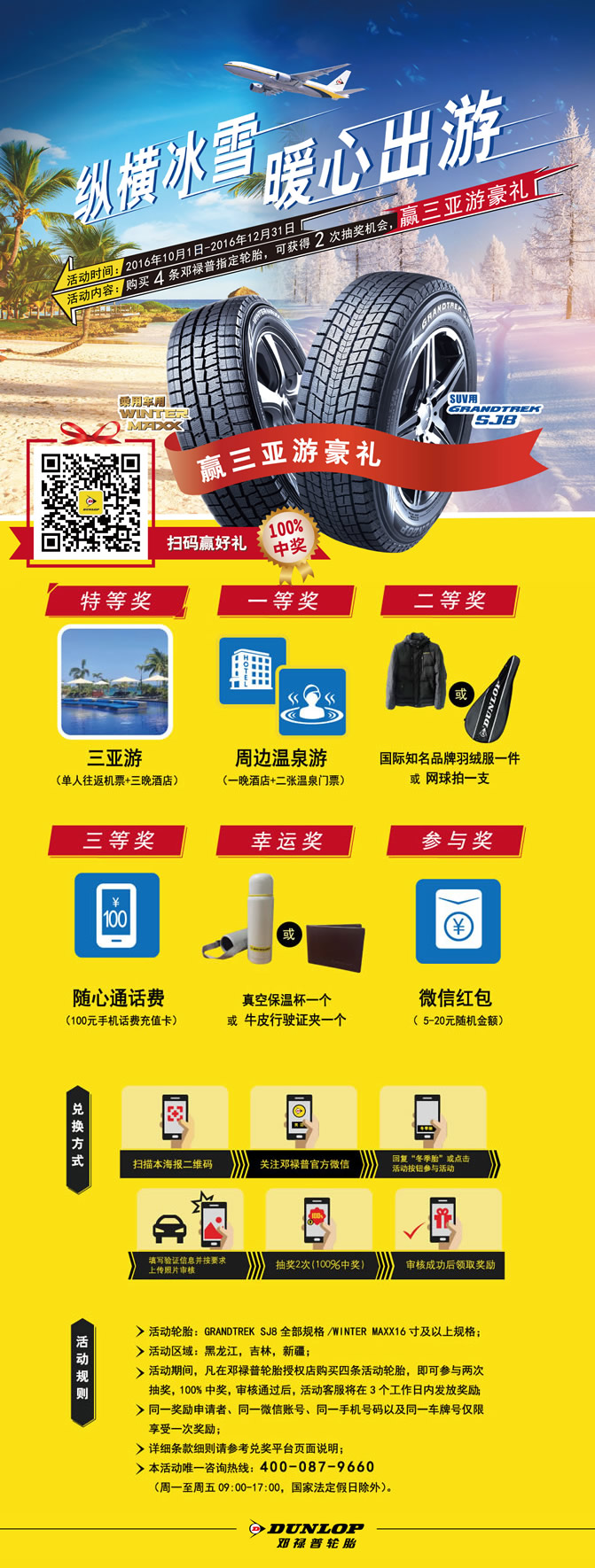 “縱橫冰雪 暖心出游” 購(gòu)買4條指定輪胎,可獲兩次抽獎(jiǎng)機(jī)會(huì),贏三亞游豪禮!