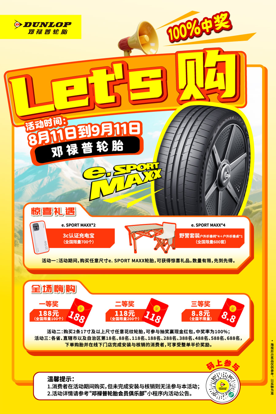 鄧祿普輪胎驚喜禮遇,Let's 購促銷活動全場嗨購!