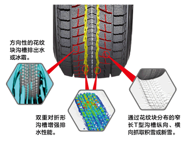 鄧祿普專為SUV車(chē)型全新推出的GRANDTREK SJ8冬季胎專門(mén)針對(duì)寒冷氣候條件設(shè)計(jì),它采用的領(lǐng)先技術(shù)大大增加了輪胎在冰面、雪地、濕地、干燥路面的穩(wěn)定性和可操控性,全面提升駕駛的安全性能。以下為SJ8冬季胎的三大亮點(diǎn)技術(shù):