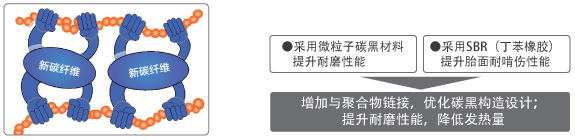即采用微粒子碳黑材料與SBR(丁苯橡膠)配方,增加與聚合物鏈接,優(yōu)化碳黑構(gòu)造設(shè)計(jì),提升耐磨性能,降低發(fā)熱量。