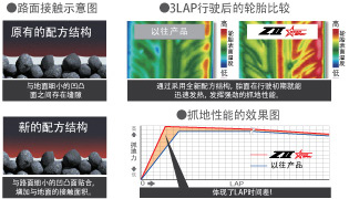 運(yùn)用4D NANO DESIGN技術(shù),提升膠料整體的剛性,成功實(shí)現(xiàn)僅在橡膠接觸地面時(shí)才發(fā)揮其柔韌性。通過(guò)增加與路面的貼合度,提升低溫時(shí)的發(fā)熱性,確保在行駛初期就能發(fā)揮強(qiáng)勁的又抓地性能。全新配方結(jié)構(gòu)增加了微粒子炭黑,優(yōu)化了聚合物比率,提升輪胎的耐熱損耗性能。通過(guò)輪胎抓地性能的提升與抑制高溫時(shí)的性能變化,確保車(chē)輛在連續(xù)沖刺階段也能跑出穩(wěn)定的LAP時(shí)間,出色的實(shí)現(xiàn)環(huán)行賽道LAP時(shí)間縮短1.0%!
