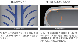 寬幅的直線型溝槽設(shè)計(jì),能夠有效確保輪胎的排水性能。即使遇到濕滑路面,駕駛者仍可以安心前行。采用高貼合性橡膠,配合真圓結(jié)構(gòu)設(shè)計(jì),使胎體整體呈大圓弧狀,確保在駕駛的過(guò)程中將地面信息準(zhǔn)確反饋至胎體,提升操控的精準(zhǔn)性。同時(shí),通過(guò)提高胎面花紋的陸海比,擴(kuò)大了輪胎的接地面積,配合大幅提升胎肩花紋的剛性,保證車(chē)輛在彎道駕駛時(shí)也能發(fā)揮強(qiáng)勁穩(wěn)定的操控性能。