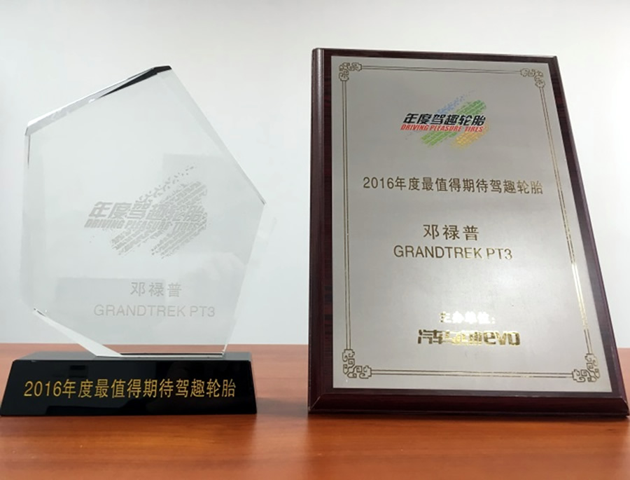 自鄧祿普GRANDTREK PT3上市以來(lái),憑借優(yōu)秀的產(chǎn)品性能得到了眾多汽車(chē)專業(yè)媒體的肯定。在2015年《汽車(chē)導(dǎo)報(bào)》雜志主辦的第七屆“中國(guó)金輪獎(jiǎng)”的年度評(píng)選中,鄧祿普GRANDTREK PT3將“年度最佳舒適SUV輪胎”收入囊中;而在《汽車(chē)與運(yùn)動(dòng)evo》雜志主辦的“2016年度駕趣輪胎評(píng)選“頒獎(jiǎng)典禮中,更獲得“最值得期待駕趣輪胎”大獎(jiǎng)。
