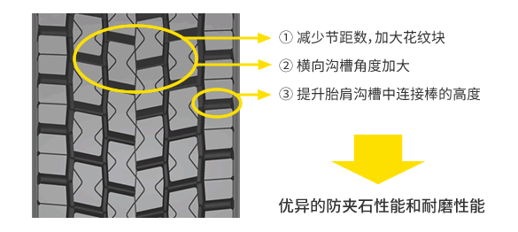 采用SBR(丁苯橡膠) ,提升胎面耐啃傷性能