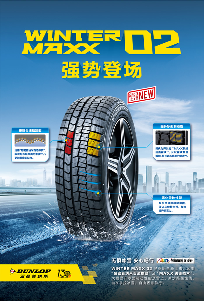 全新上市的WINTER MAXX02運(yùn)用鄧祿普獨(dú)有的“超密著納米百適橡膠”和“MAXX銳鋒技術(shù)”,大幅提升冰面制動(dòng)性能及雪上和冰沙路面性能,將為在冬季復(fù)雜路況下出行的車輛提供有力保障,助廣大車主無(wú)懼冰雪,安心暢行。
