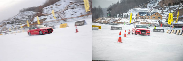 雪面測(cè)試項(xiàng)目中,參與人員同樣先將試駕的奧迪A4L加速至30km/h勻速行駛,當(dāng)車輛行駛至預(yù)設(shè)的制動(dòng)點(diǎn),踩下制動(dòng)踏板,相比冰面的測(cè)試,雪地制動(dòng)反饋更加直接,車輛很快停止,WINTER MAXX02與以往產(chǎn)品的雪地制動(dòng)均表現(xiàn)出色;在雪地繞樁項(xiàng)目中,WINTER MAXX02與以往產(chǎn)品的性能差距就明顯很多,無(wú)論是雪地操控還是橫向抓地性能,全面的提升讓安裝了WINTER MAXX02的車輛繞樁操控指向性更明確。