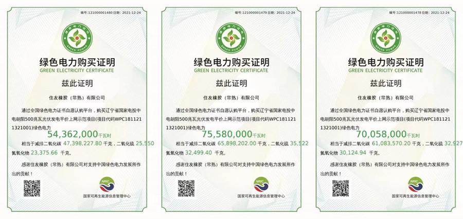 2022年對(duì)于住友橡膠來(lái)說(shuō)是具有里程碑意義的一年,分別迎來(lái)了常熟工廠(chǎng)建廠(chǎng)20周年、湖南工廠(chǎng)投產(chǎn)10周年。企業(yè)的長(zhǎng)足發(fā)展離不開(kāi)沃土的滋養(yǎng),懷感恩之心,行回報(bào)之舉,是一個(gè)有責(zé)任感的企業(yè)應(yīng)具備的態(tài)度,綠證的取得和使用可謂是住友橡膠反哺社會(huì)最好的禮物。尤為值得一提的是,綠證交易在我國(guó)尚處于自愿認(rèn)購(gòu)階段,作為國(guó)際知名輪胎品牌,住友橡膠一馬當(dāng)先取得綠證,不僅成為常熟首家使用綠色電力的跨國(guó)企業(yè),更是行業(yè)內(nèi)首家將綠色電力投入生產(chǎn)的企業(yè)。