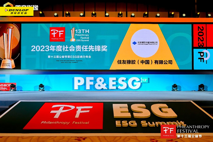 2024年1月23日-24日,第十三屆公益節(jié)暨2023 ESG影響力年會于北京舉行。年會兩項大獎——2023年度社會責(zé)任先鋒獎、2023年度ESG案例獎花落全球知名輪胎企業(yè)住友橡膠。