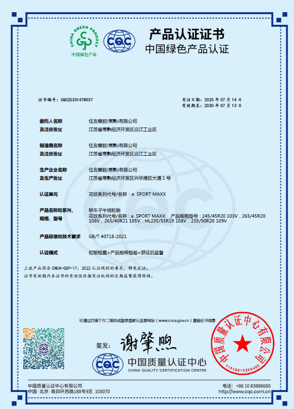 在全球碳中和戰(zhàn)略加速推進(jìn)的背景下,輪胎行業(yè)正從環(huán)保標(biāo)準(zhǔn)的“遵循者”向綠色創(chuàng)新的“引領(lǐng)者”轉(zhuǎn)變。近日,鄧祿普輪胎常熟工廠迎來重要里程碑——其專為新能源汽車打造的核心產(chǎn)品e.SPORT MAXX輪胎,成功通過國家權(quán)威機(jī)構(gòu)“國家品質(zhì)認(rèn)證中心”的嚴(yán)格審核,榮獲國家級“綠色產(chǎn)品認(rèn)證”。這一認(rèn)證不僅是對鄧祿普產(chǎn)品性能的高度認(rèn)可,更是其引領(lǐng)行業(yè)綠色轉(zhuǎn)型的重要標(biāo)志。