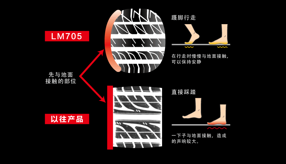 采用新技術(shù),對(duì)骨架(截面輪廓+胎面花紋)進(jìn)行優(yōu)化,提升胎側(cè)和胎面的緩沖性能,從而抑制路面沖擊導(dǎo)致的輪胎震動(dòng),提升“駕乘舒適感”和“靜音效果”。